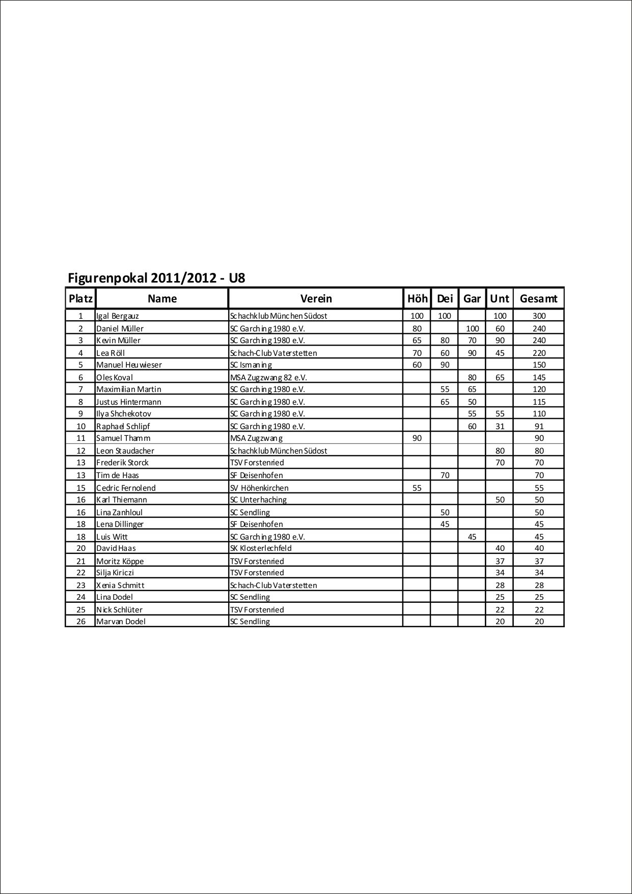 Ergebnisse der Schachturniere der Bezirksjugend München